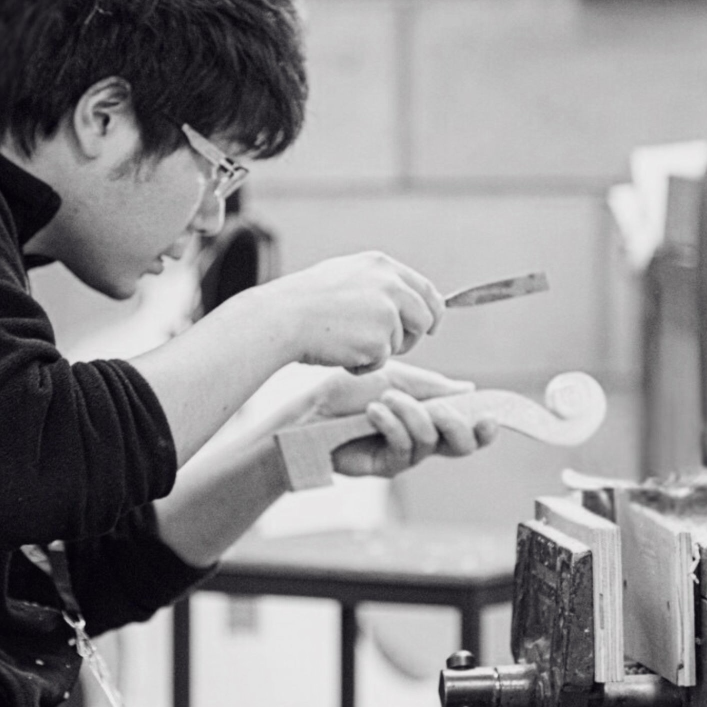 信州大学でチェロに没頭したのち、国内外にて楽器製作を学び、現在名古屋市で活動をしている楽器製作家・伊藤慶治(いとうよしはる)。